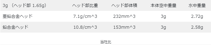 また鉛合金に比較し約15%沈降スピードが遅く、使い慣れたエギの沈降スピードに近いため、カーブフォールで喰わせることが容易です。